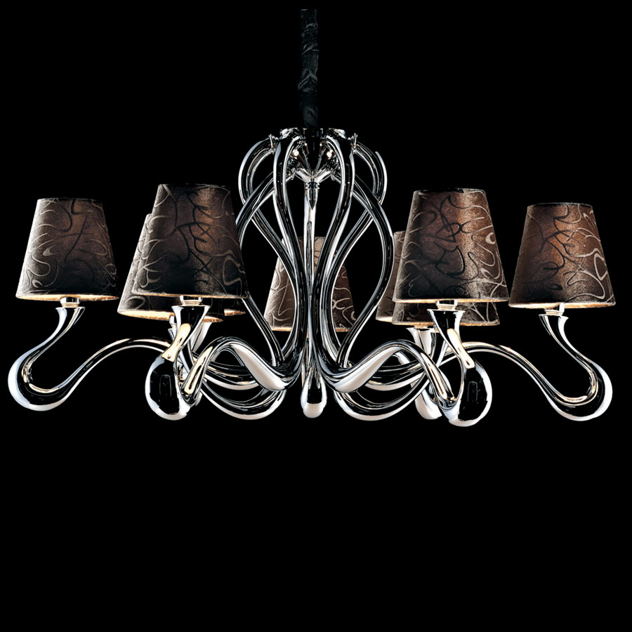 Descrizione: Un moderno lampadario a sospensione è predisposto per 6 lampadine ad incandescenza da 40W con attacco Е14. Il telaio è realizzato in metallo con finitura cromata di qualità che non perde la sua lucentezza col tempo. Le plafoniere sono realizzate in tessuto bianco che permette di creare nella stanza una luce soffice e gradevole. L’altezza del lampadario è regolabile.
