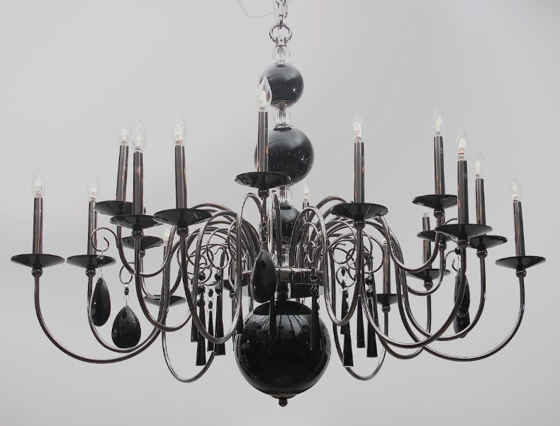 Descrizione: Lampadario a sospensione è predisposto per 18 lampadine alogene da 20W con attacco G4. Il telaio è realizzato in metallo e decorato con delle sfere di vetro e pendenti di colore nero. La lunghezza della catena è regolabile. Il design originale del modello si integrerà perfettamente negli interni sia classici che moderni. Le lampadine eseguite nello stile di candele aggiungono alla stanza un particolare aspetto aristocratico.