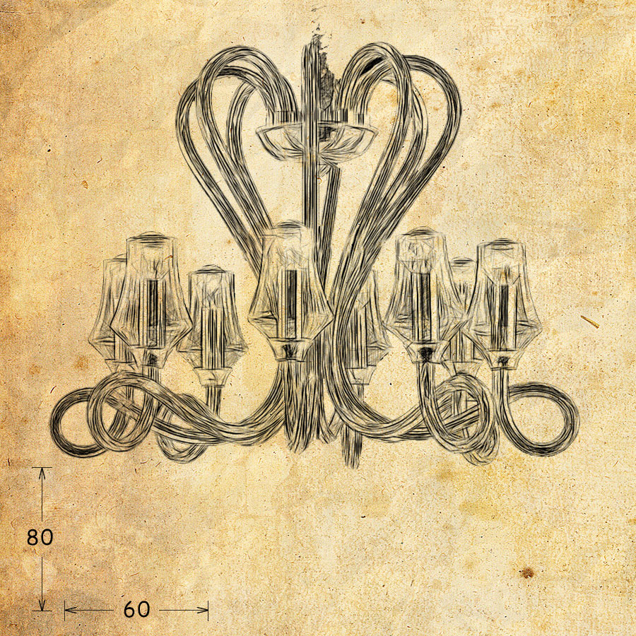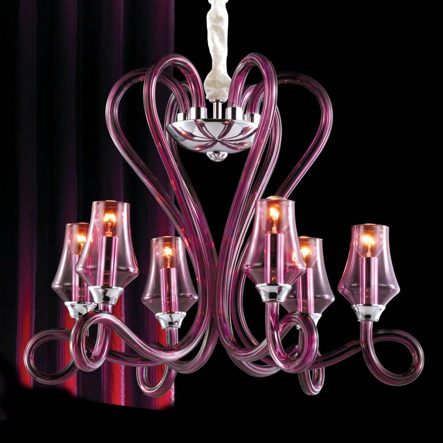 Descrizione: Lampadario della serie Elvira è realizzato in vetro di alta qualità di colore puprpureo e sarà un bellissimo complemento a qualsiasi interno. È predisposto per 8 lampadine ad incandescenza da 40W con attacco Е14.