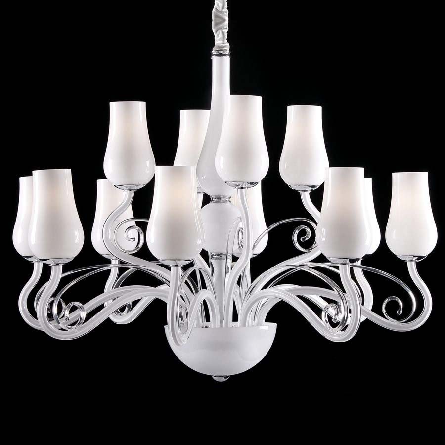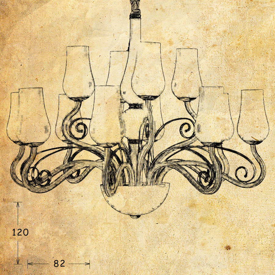 Descrizione: Nonostante le linee delicate, il lampadario Eleonora non ha perso la sua funzionalità ed è capace di illuminare una stanza di considerevole superficie. È predisposto per 12 lampadine ad incandescenza da 40W con attacco Е14. Il telaio è metallico e tutte le plafoniere, corni e coppe sono eseguite di vetro di alta qualità di colore bianco. Gli elementi metallici in vista hanno finitura cromata di qualità che non perde la sua lucentezza col tempo. L’altezza del lampadario viene regolata tramite la catena.