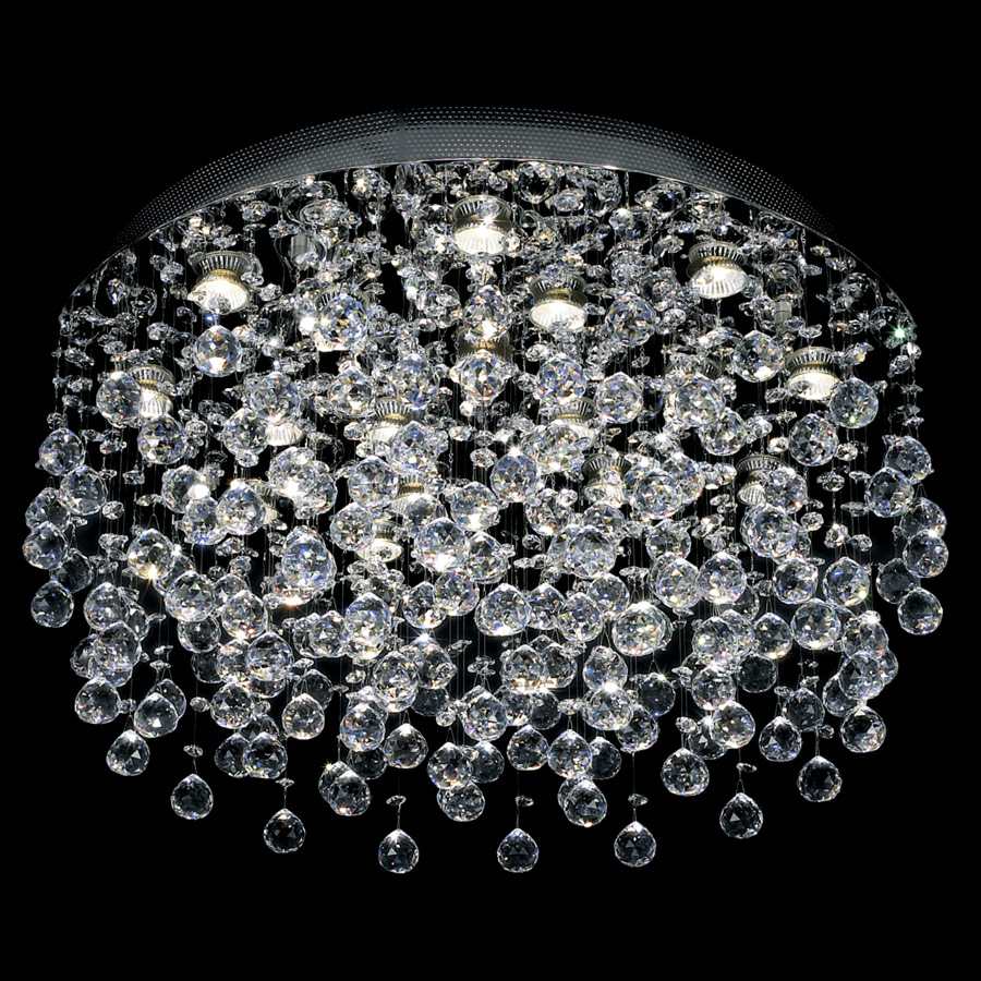 Descrizione: Bellissimo lampadario è realizzato in metallo cromato e cristallo Asfour che imita gocce di pioggia crystalline che cadono giù. Questo lampadario crea un gioco di luce incredibilmente bello. È predisposto per 18 lampadine alogene da 50W con attacco GU10.