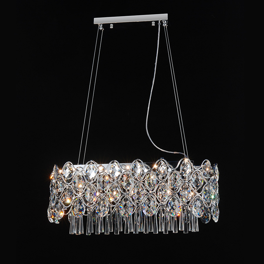 Descrizione: Lampadario a sospensione è realizzato in metallo con finitura cromata di qualità che non perde la sua lucentezza col tempo. Il gioco di luce sulle faccette del cristallo Asfour e gli elementi cromati trasfigura lo spazio. È predisposto per 21 lampadine alogene da 20W con attacco G4. L’altezza del lampadario è regolabile.
