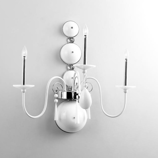 Descrizione: Lamapada da parete predisposta per 3 lamapadine alogene da 10W con attacco G4. Il telaio è realizzato in metallo e decorato con semisfere di vetro e pendenti colore bianco. Il Il design originale si integrerà perfettamente negli interni sia classici che moderni. Le lampadine eseguite in forma di candele aggiungono alla stanza un particolare aspetto aristocratico.