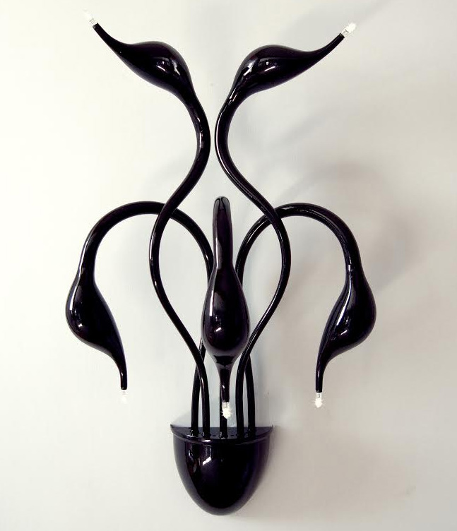 Descrizione: Lampada da parete Cigno così come i lampadari di questa serie ricorda cigni bianchi assottigliati. È realizzata interamente in metallo di qualità coperto con smalto nero lucido. È predisposta per 5 lampadine alogene da 20W con attacco G4.