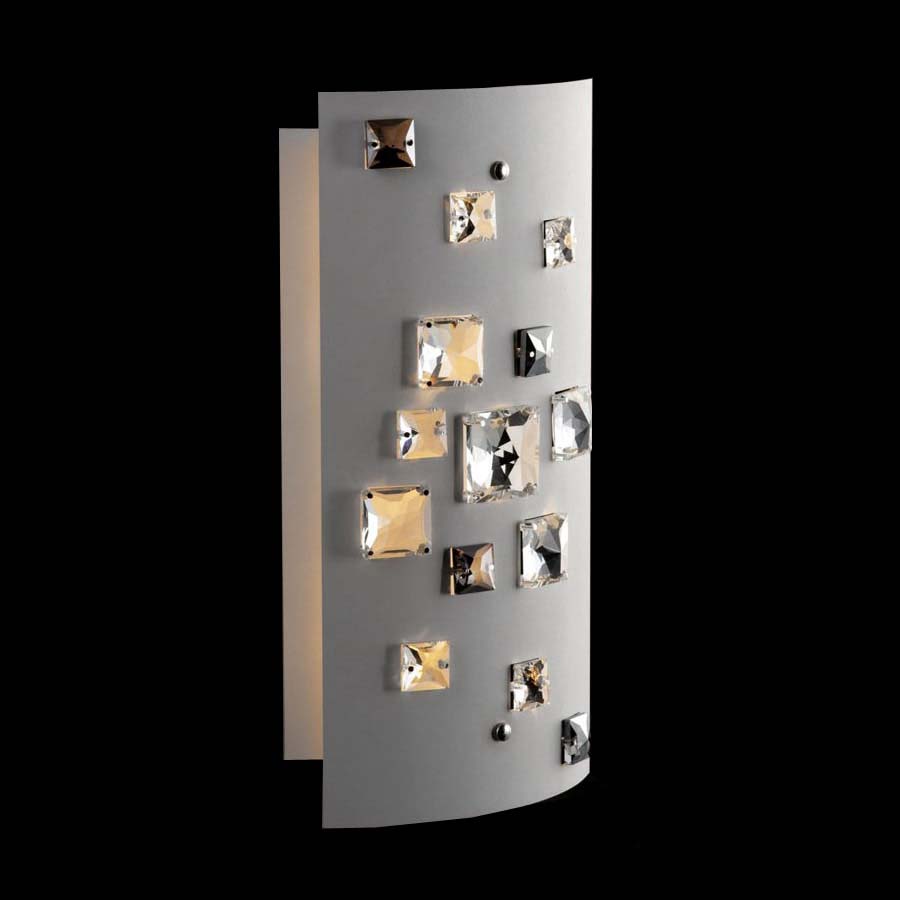 Descrizione: Lampada da parete moderna è realizzata in metallo e decorata con pendenti di colore trasparente di cognac. Nonostante la forma semplice ha un aspetto molto originale e crea un bell’effetto di luce. La lampada è predisposta per 2 lampadine alogene da 40W con attacco G9.