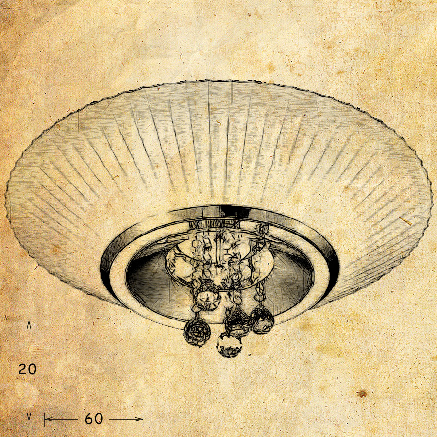 Descrizione: Lampada da soffitto della serie Piatto è fatta nello stile classico, benchè si accordi con i trend moderni. È predisposta per 6 lampadine ad incandescenza da 60W con attacco Е14. Il diffusore è realizzato in vetro bianco opaco con effetto plissé. Il cristallo Asfour ha illuminazione soft da una lampadina alogena supplementare da 20W con attacco G4. Le parti metalliche hanno una finitura cromata di qualità che non perde la sua lucentezza col tempo.