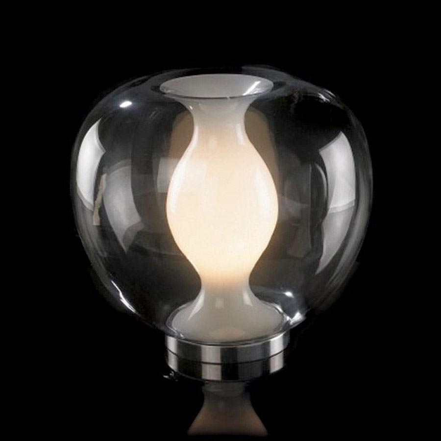 Descrizione: Lampada da tavolo Marcelo è fatta nello stile modern. La base è di metallo cromato. E la plafoniera rappresenta una forma di vetro trasparente di diamnetro 34cm, dentro la quale è ubicato un recipiente che imita un vaso da fiori. È predisposta per una lampadina a risparmio energetico da 24W con attacco Е27.