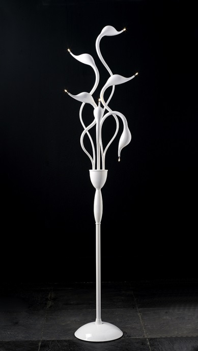 Описание: Торшер Cigno также, как и другие светильники этой серии напоминает белых утонченных лебедей. Полностью выполнен из качественного металла покрытого белой глянцевой эмалью. Рассчитан на 6 галогенных ламп, мощностью 20 Вт с цоколем G4.